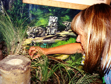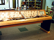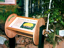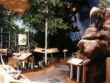 Mueller State Park is surrounded by many of the 14,000’ tall peaks of the Rocky Mountains. It is home to large numbers of black bear, elk and bighorn sheep. Most of the exhibits in the visitor center are organized by the different types of habitat located in the Park: meadow, aspen forest, coniferous forest, and granite rock outcropping. Some unusual features in the 1,500 sq. ft. exhibit space are a 12’ tall replicated rock outcropping with taxidermy mounts of bighorn sheep, a touchable cross-section scale model of nearby Pike’s Peak, and a free interpretive workbook that young visitors can use to make rubbings of animal tracks located throughout the exhibit hall. During the design process a strong emphasis was placed on having a high level of interactivity in the exhibits. As a result there are matching games, hidden answer quizzes, over a hundred touchable items, a video, numerous audios, one scent feature, and a guide for parents to interpret the exhibits with their children.